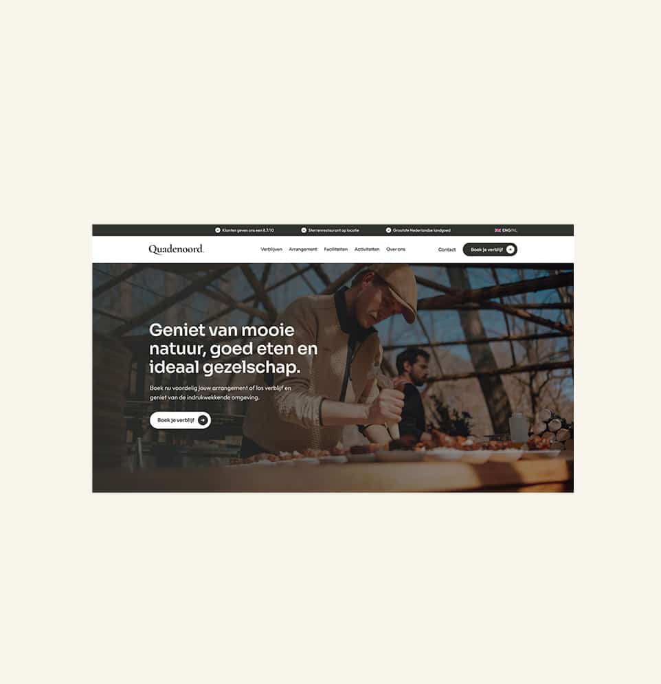 Quadenoord is bustling with (new) activity, however, the current website and brand did not reflect this. That’s why we started with an update of the brand. After a strategic session, we unravelled an updated story of Quadenoord. Then, we were ready to translate this new narrative to a new brand book. With these strategic documents as the foundation, we were ready to design and build the new Quadenoord website.